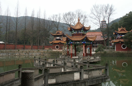 始建于晉代,唐、宋、元“三朝御修”得以成名,清朝順治初年,有奉天玉和尚來此駐金錫,重啟禪關(guān),大舉叢林。夾山寺達鼎盛時期,規(guī)模宏大有九殿一宮,需“騎馬關(guān)山門”,自始在國內(nèi)外廣為流傳,澤被深遠,尤其對日本佛教文化影響極大。幾經(jīng)風霜,現(xiàn)院內(nèi)六殿一宮,紅墻金瓦,雕梁畫棟,蔚為壯觀,有僧數(shù)十人,晨鐘暮鼓,唱經(jīng)誦佛,煙纏霧燒,香火旺盛,善男信女推進涌出,可謂“此地清幽疊養(yǎng)靜,何飲人海問蓬萊。”